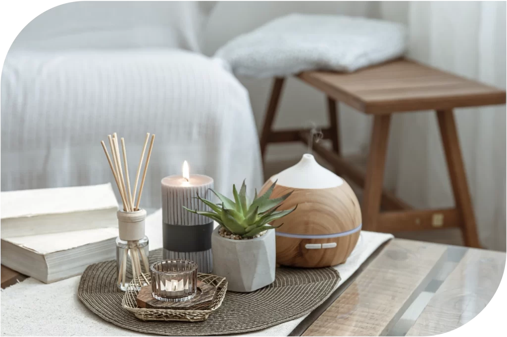 Velas perfumadas, difusores de óleo essencial e plantas com fragrâncias agradáveis podem preencher o ar com aromas convidativos. Isso não apenas adiciona um toque sensorial, mas também pode afetar positivamente o humor e o bem-estar;