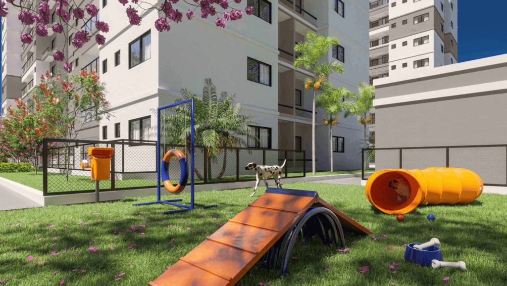E é aí que entra a importância de ter áreas comuns pensadas para o seu bichinho no seu endereço. Para nós aqui da Stanza, o Pet Play é sempre um ponto de atenção nos projetos já que espaços assim permitem que os animais interajam entre si. Além de promover socialização e reduzir o risco de comportamentos indesejados devido ao isolamento.