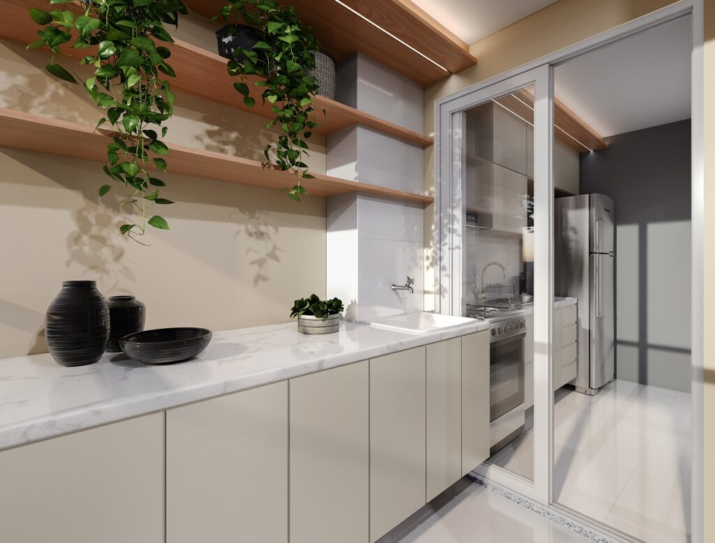 Otimize espaço no seu apê: cozinha integrada à varanda