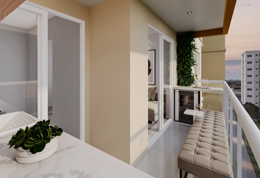 Uma dica bem interessante e que é ideal para esse tipo de ambiente integrado é aplicar um revestimento único, para que resulte na amplitude. Se por acaso, for aplicado revestimentos em tons diferentes, os ambientes ficam separados mesmo que não seja a intenção. Por isso, aposte em revestimentos que tenham um tom parecido. Não esqueça que é fundamental o fechamento da sacada com vidros, mas lembre-se sempre de consultar o regulamento do condomínio para não alterar o padrão da fachada do seu prédio.