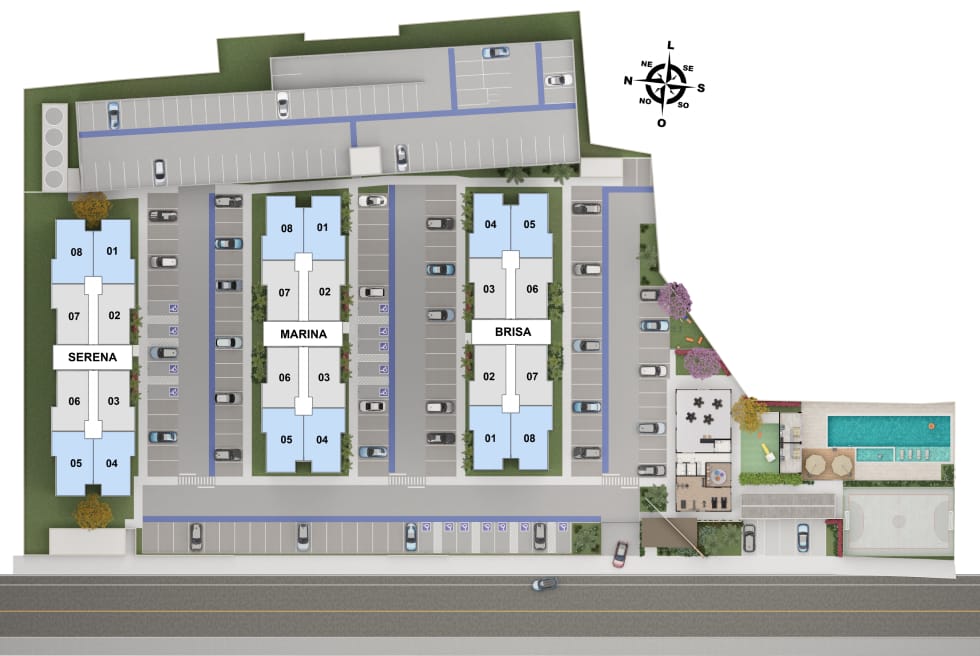 Torre A - Brisa, Torre B - Marina e Torre C - Serena: 16 pavimentos - Térreo + 15 pavimentos tipo.