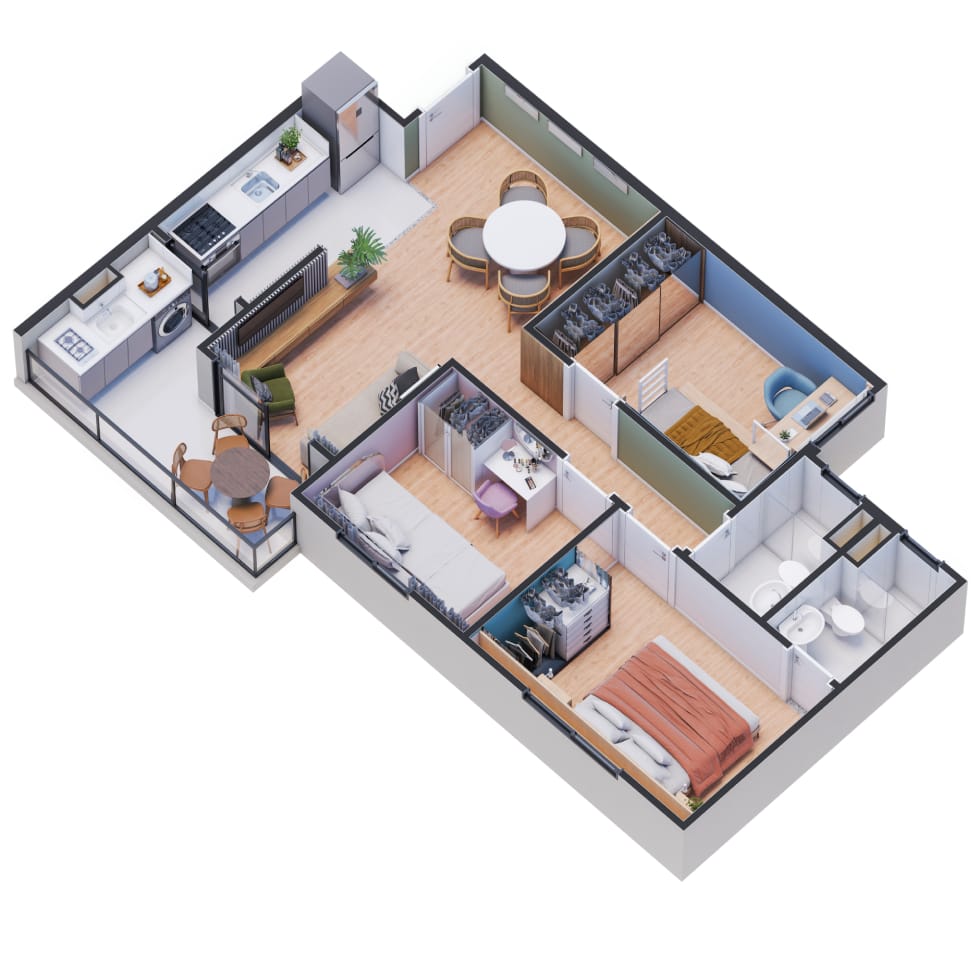 • 2 ou 3 quartos com suíte
